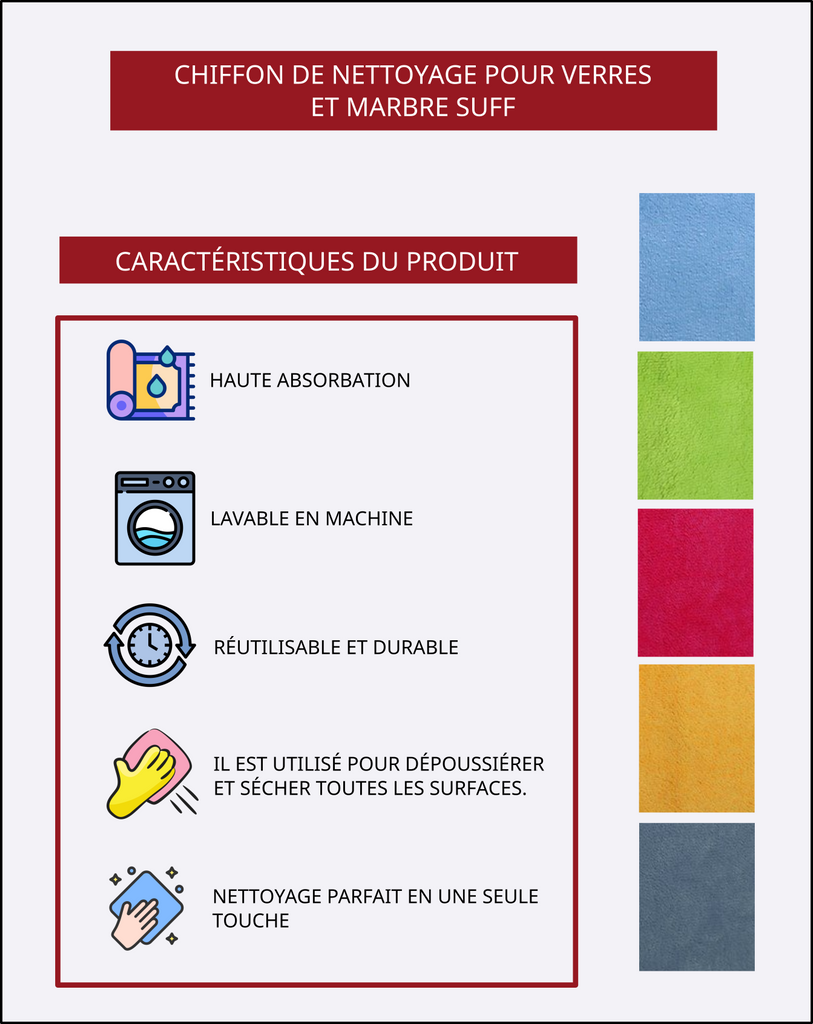 - Ultra-absorbant : sèche toutes les surfaces sans laisser d'humidité.